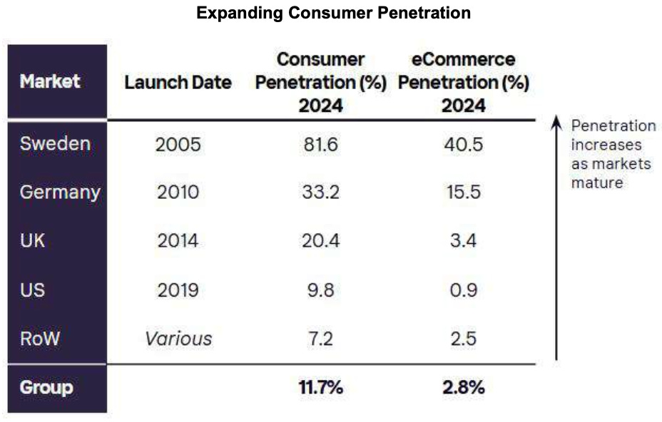 This consumer growth has been remarkable, with active Klarna consumers increasing from 79 million in 2022 to 93 million by the end of 2024 - an 18% increase in just two years. This growth demonstrates Klarna's ability to continuously expand its consumer base even in mature markets, positioning the company as an increasingly essential partner for merchants looking to reach digitally-savvy shoppers.