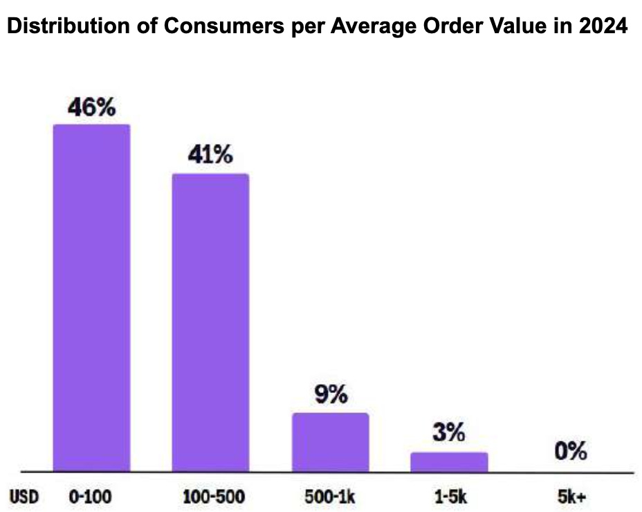 A key factor in this exceptional credit performance is Klarna's focus on small-ticket, short-duration transactions. Their average balance per active consumer was just $87 in 2024, with an average loan duration of approximately 40 days. As the distribution data shows, 87% of their orders in 2024 were $500 or less, with 46% under $100 and 41% between $100-500. This concentration on smaller transactions limits potential losses upon default and allows for rapid portfolio adjustment when economic conditions change.