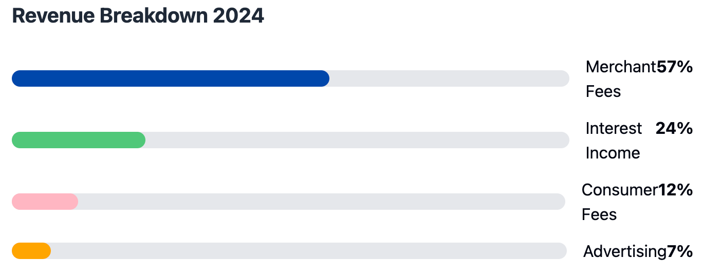 Klarna has successfully diversified beyond pure BNPL fees. The company generated $180 million in advertising revenue in 2024, up from approximately $13 million in 2020. This diversification reduces dependence on transaction fees and creates additional value for both consumers and merchants.