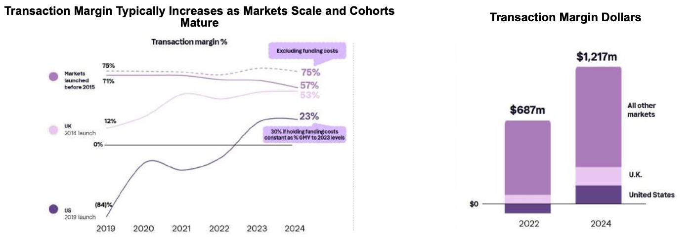 What's particularly instructive is how transaction margins evolve as markets mature. Data from Klarna's F-1 shows that markets launched before 2015 (including Sweden, Norway, Finland, Germany, Netherlands, Austria and Switzerland) currently generate transaction margins of approximately 57%, while the UK (launched in 2014) achieves 23%, and the US (launched in 2019) has improved from negative 84% at launch to 23% in 2024. This pattern of margin improvement as markets mature provides a roadmap for Latin American players contemplating their own growth trajectories.
